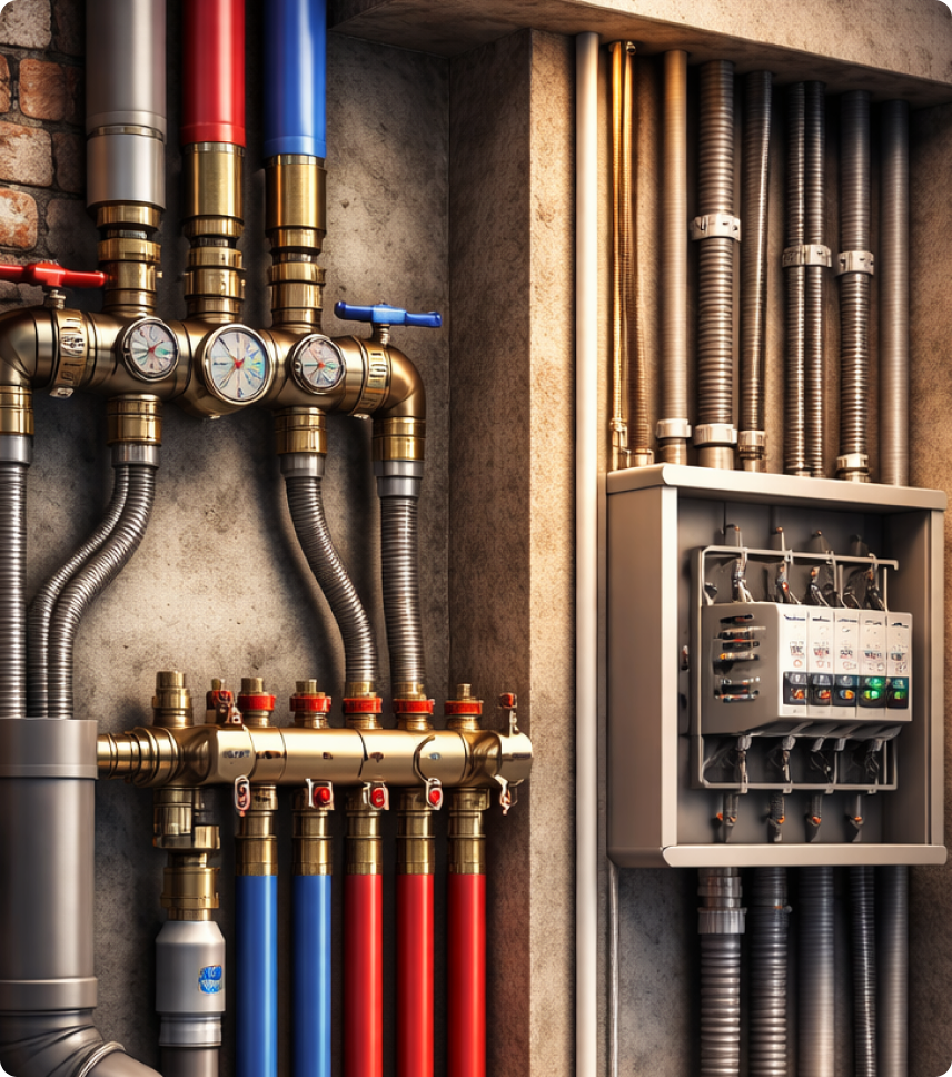 Инженерные системы вынесены за пределы жилых зон, обеспечивая тишину, порядок и удобство обслуживания.
